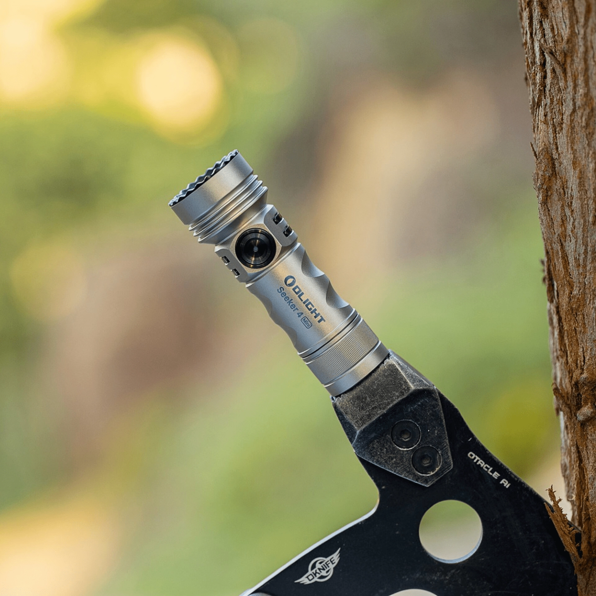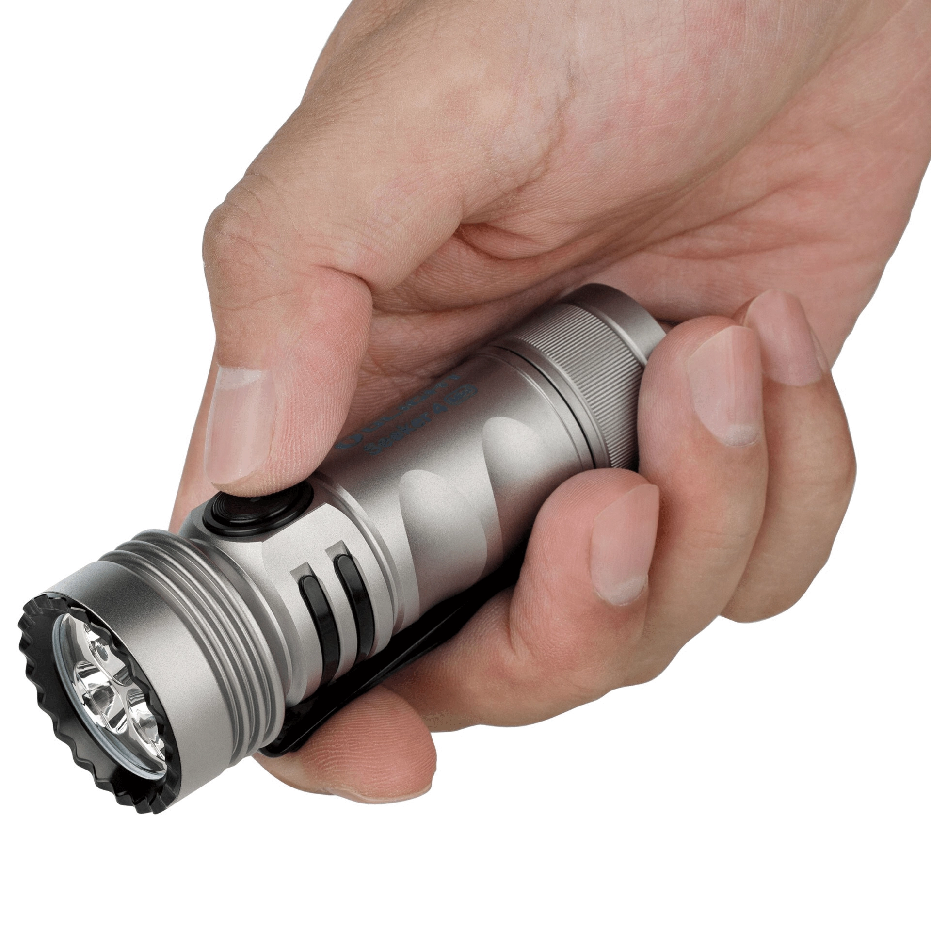 La Seeker 4 Mini en édition limitée titane est une lampe EDC extrêmement robuste avec double source lumineuse : une LED blanc froid puissante (5700–6700 K) et une UV 365 nm précise pour la détection de traces fluorescentes, la vérification de documents ou le contrôle de propreté. Grâce à ses dimensions compactes, elle se glisse facilement dans une poche, sur une sangle de sac à dos ou dans l’équipement de voyage.