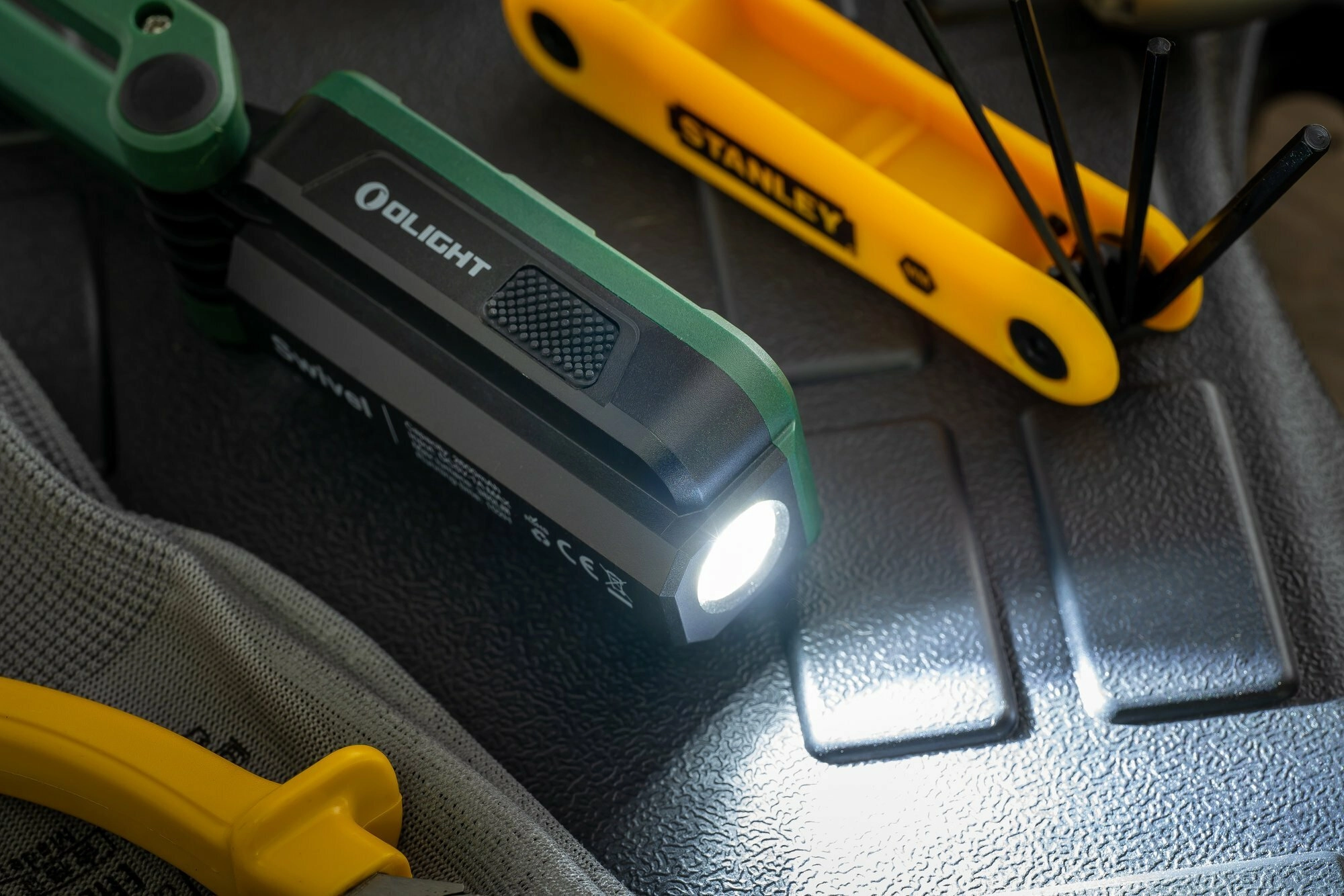 L’OLIGHT Swivel 400 G est une lampe de travail polyvalente qui combine un large panneau COB pour l’éclairage de surface et une LED ponctuelle pour un faisceau concentré. Grâce aux modes à intensité variable, aux aimants du support et à ses dimensions compactes, elle gère facilement les réparations, le travail à l’atelier et le camping en soirée.