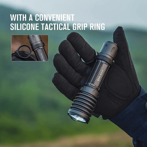 Puissante lampe tactique OLIGHT Warrior X 3 en coloris limité Gunmetal Grey offrant un flux lumineux jusqu’à 2500 lm, une portée de 560 m, un corps en aluminium robuste avec IPX8 et une recharge magnétique MCC3. Elle dispose d’un interrupteur arrière à deux niveaux, d’une bague de frappe avec billes de zirconium pour briser une vitre en cas d’urgence, ainsi que d’une excellente prise en main grâce au Warrior Ring et à l’anneau en silicone.