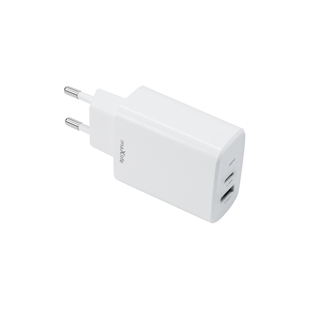 Le chargeur universel MAXLIFE 30 W pour prise secteur combine les standards modernes USB‑C PD et USB‑A QC, rechargeant en toute fiabilité téléphones, tablettes, écouteurs ainsi que de petits ordinateurs portables ou consoles. Grâce à une gestion intelligente de la puissance, il s’adapte à l’appareil connecté et garantit une vitesse maximale sans surchauffe.