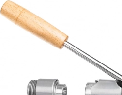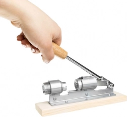 La base en bois stable maintient l’outil fermement sur le plan de travail, rendant l’opération rapide, précise et sûre. La commande par le dessus demande moins de force que les casse-noix à pince classiques et facilite le travail, même lors d’utilisations prolongées.