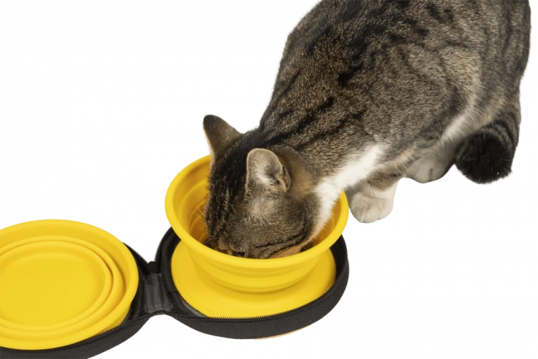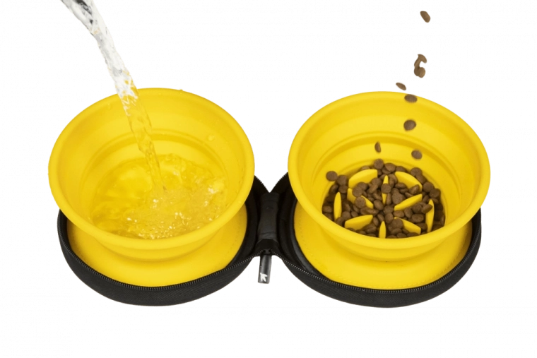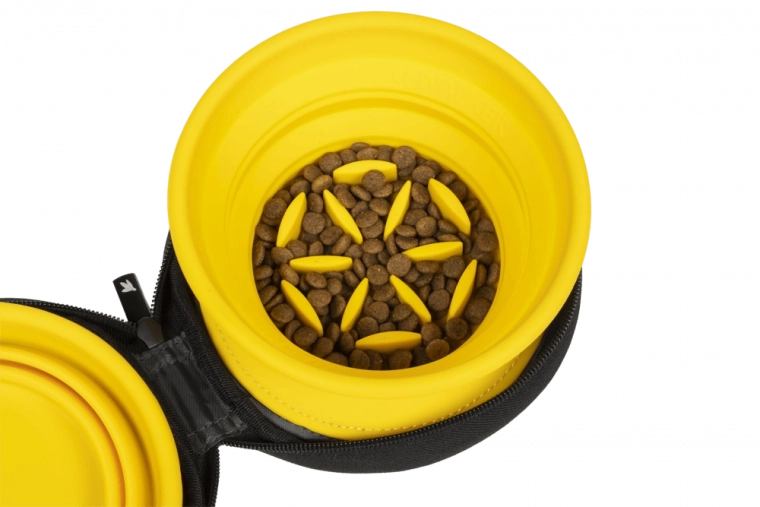 Pratique ensemble de voyage avec deux gamelles pliables en silicone de qualité, chacune d’une capacité de 350 ml – idéal pour la nourriture et l’eau de votre compagnon. L’une des gamelles est équipée d’une fonction slow feeder pour ralentir l’ingestion, l’autre sert de gamelle classique. L’ensemble est rangé dans une housse résistante avec scratch intérieur et fermeture éclair de qualité pour une fermeture sûre.