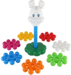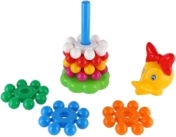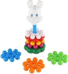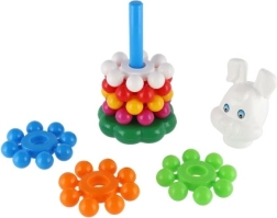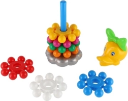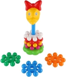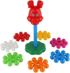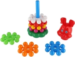 Les larges anneaux colorés tiennent bien dans les mains des enfants et s’enfilent aisément sur la tige centrale. Le jeu encourage la précision des gestes et entraîne la coordination œil–main dès les premiers pas.