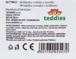 Le jouet est fabriqué en plastique léger et résistant aux bords lisses et est disponible en 3 variantes avec différentes formes d’anneaux et des motifs d’animaux amusants au sommet. L’emballage pratique en filet facilite le rangement et le transport.