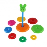 Cette pyramide empilable avec anneaux colorés est un premier jouet de construction idéal. Les enfants enfilent les anneaux sur la tige et les empilent du plus grand au plus petit, entraînant ainsi naturellement leur motricité fine, leur patience et leur raisonnement logique. La base se compose d’un support en plastique robuste avec une tige et un élément supérieur amovible (selon la variante).