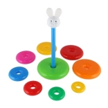 Enfiler les anneaux sur la tige centrale renforce naturellement la prise, la coordination œil-main et la concentration. Un excellent choix pour les premiers jeux didactiques.