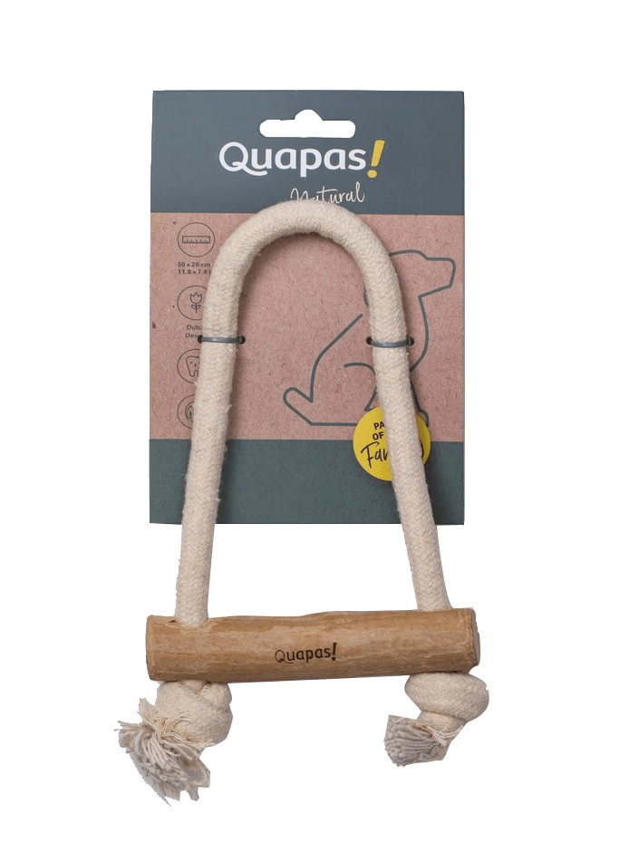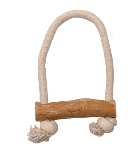 Découvrez un jouet pour chien durable et écologique qui associe du bois de caféier naturel à une corde en coton solide. Quapas! Pull est idéal pour les jeux de traction à deux, l’apport et la mastication en solo, et aide à maintenir l’hygiène bucco-dentaire du chien de manière entièrement naturelle.