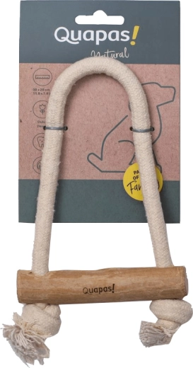 Le jouet pour chien Quapas! Pull combine une corde en coton robuste et du bois de caféier naturel pour des jeux de traction amusants et une mastication en toute sécurité. Il favorise le jeu interactif, nettoie naturellement les dents et masse les gencives et, grâce à des matériaux résistants, supporte une utilisation plus intensive.