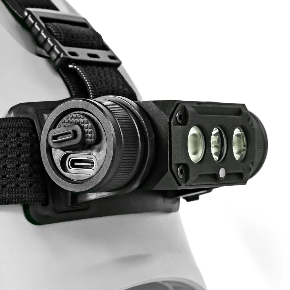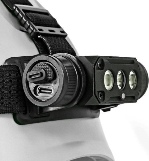 L’alimentation repose sur une batterie Li‑ion 18650 remplaçable (2600 mAh), rechargeable via USB‑C. L’état de charge est indiqué par LED (rouge = en charge, bleu = entièrement chargé). Le corps robuste en alliage d’aluminium avec indice IP44 résiste à la pluie et aux chutes d’1 m, ce qui prépare la frontale au travail, aux sorties et au camping.
