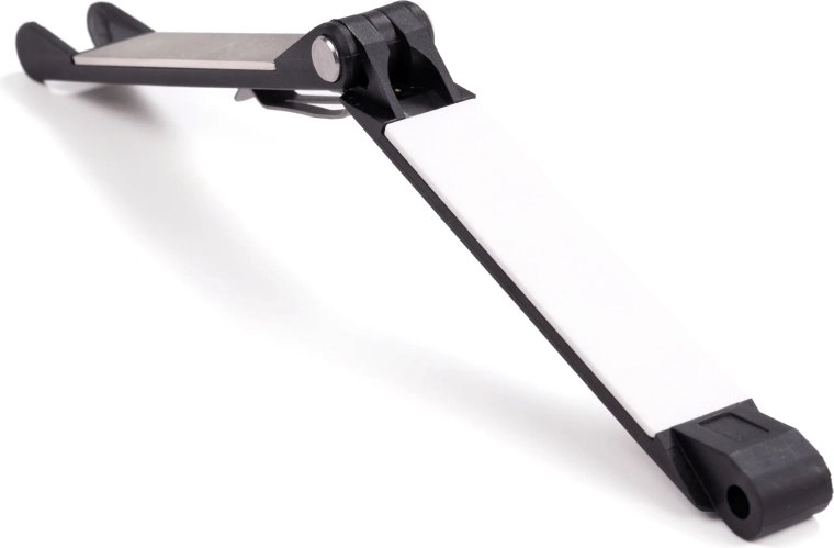 La plaque diamantée 400 grit, plus agressive, restaure rapidement le fil, tandis que la céramique fine le lisse et le polit pour une coupe nette et précise – le tout dans un outil de poche.