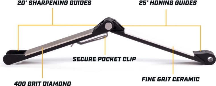 Sa construction à la fois robuste et légère se replie au format de poche, que vous fixez facilement grâce au clip sur une poche, un sac ou un gilet. Un outil pratique pour la chasse, la pêche, la randonnée et l’usage quotidien, dès que vous devez redonner rapidement du tranchant à vos couteaux.