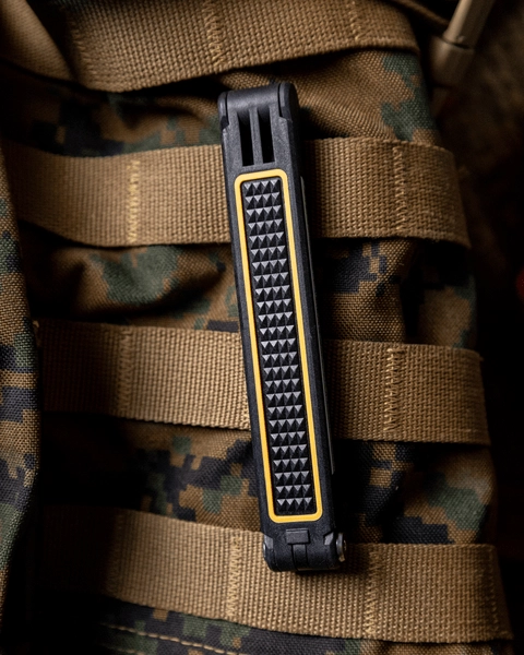 Le cadre en A compact se replie au format poche, et le clip métallique permet une fixation sûre sur un sac à dos, une sangle MOLLE ou une poche – toujours à portée de main.