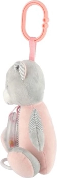 Grâce au clip, l’ourson se fixe facilement au lit, à la poussette ou au siège auto.