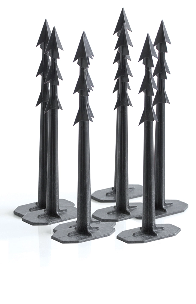 Des crochets spéciaux sur la tige du piquet empêchent l’arrachement et le glissement des matériaux fixés pour une stabilité durable des massifs.
