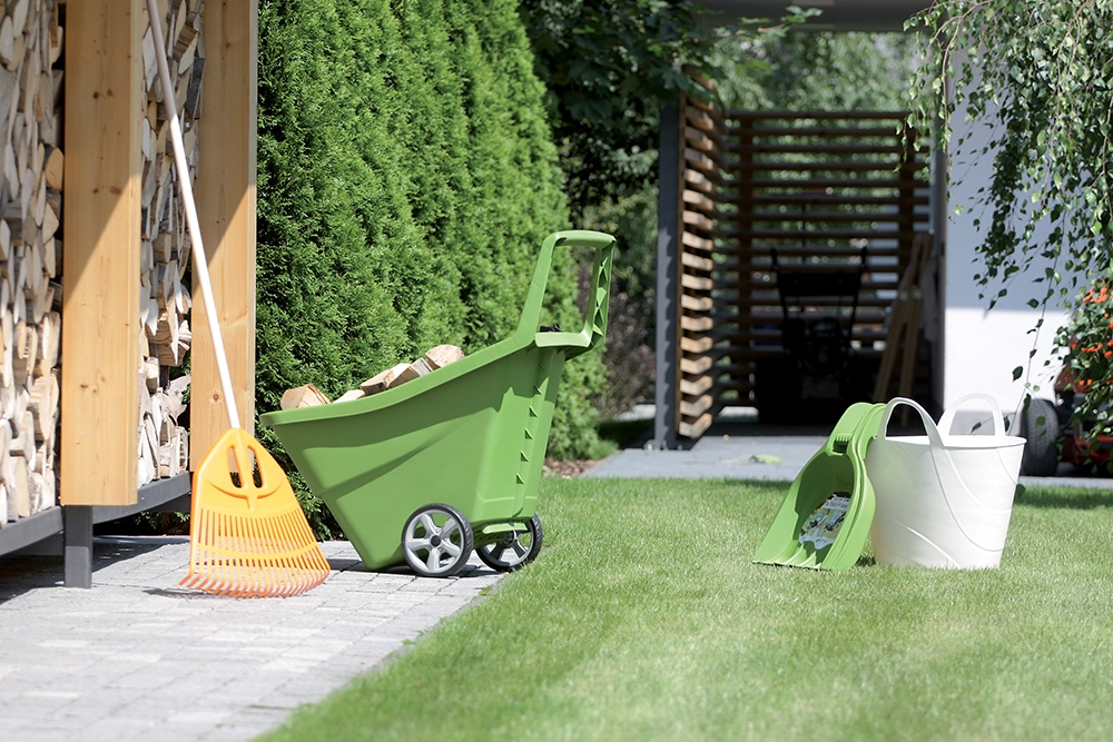 Le chariot de jardin LOAD & GO III est l’aide idéale pour l’entretien régulier du jardin. Il offre un grand volume de 95 litres, un faible poids et une construction en plastique robuste, facile à nettoyer. Grâce à sa poignée intégrée haute et à ses deux roues robustes, le chariot transporte sans effort feuilles, paillis, terre, branches ou bois de chauffage.