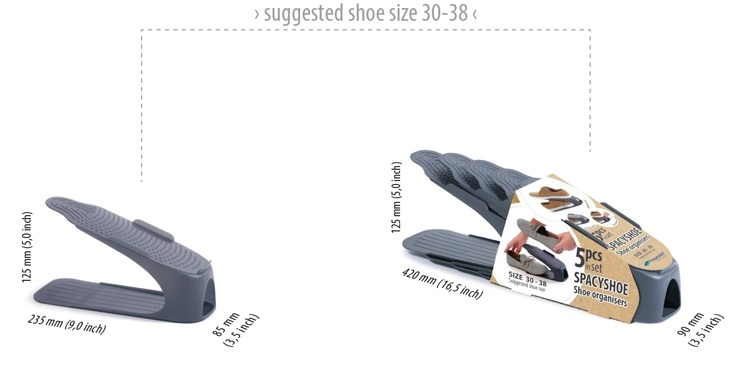 Ces organiseurs en plastique résistants sont conçus pour un usage quotidien et vous aident à garder vos chaussures propres, bien rangées et à portée de main. La surface antidérapante maintient sandales, baskets, mocassins et talons en toute sécurité. La structure flexible accueille des chaussures jusqu’à 12 cm de hauteur et facilite la manipulation comme l’entretien.