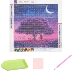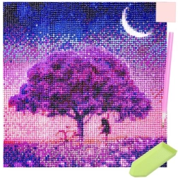 Le motif d’arbre dans des tons rose‑violet avec un croissant de lune crée un effet scintillant enchanteur, qui ressort aussi bien encadré que sans cadre. La peinture diamant est idéale pour apaiser l’esprit, développer la motricité fine et la créativité – adaptée aux débutants comme aux confirmés.
