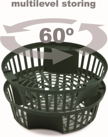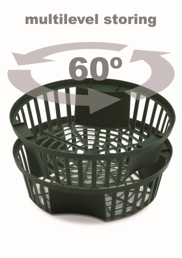Grâce au plastique robuste avec stabilisation UV et résistance au gel, le panier convient à une utilisation extérieure toute l’année. Son profil bas et ses perforations étudiées garantissent un bon drainage et une circulation de l’air autour des bulbes. Après la saison, il suffit de les empiler pour gagner de la place.
