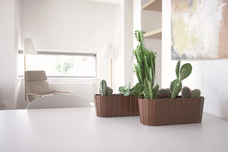La forme allongée s’adapte parfaitement aux appuis de fenêtre, petites tables et étagères – parfait pour les herbes et les succulentes.