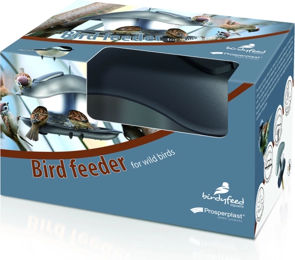Mangeoire pour oiseaux élégante au design moderne, avec une construction durable en plastique et métal. Le réservoir transparent permet de contrôler facilement la quantité de nourriture, le toit incliné protège de la pluie et de la neige, et l’installation flexible permet de la suspendre, de la fixer à une rambarde ou de la monter sur un poteau.