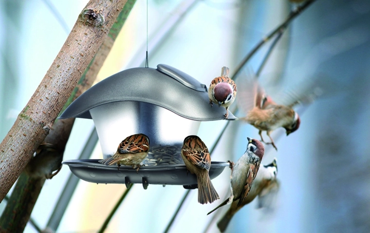 Le petit toit incliné de couleur anthracite ombrage efficacement et protège la nourriture de l’humidité pour qu’elle reste fraîche et attrayante pour les oiseaux.