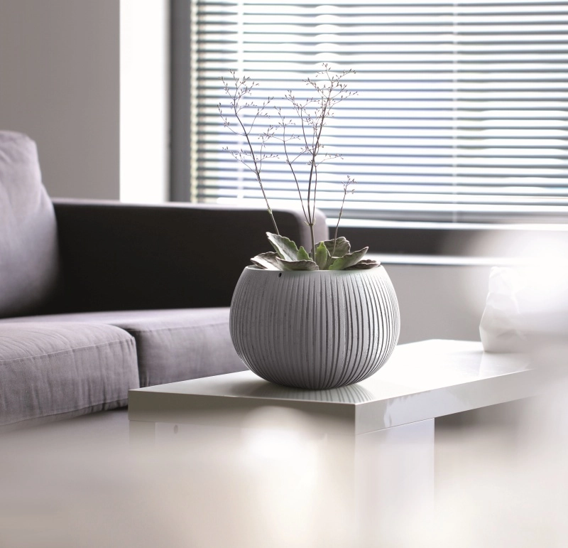 La forme sphérique et les rainures verticales donnent du style aux plantes et subliment chaque espace.