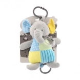 Un compagnon de jeu parfait pour le lit de bébé ou la poussette grâce à son clip sécurisé, qui permet un accrochage facile. La texture de l’éléphant favorise l’exploration tactile, tandis que son design coloré capte l’attention visuelle de l’enfant.
