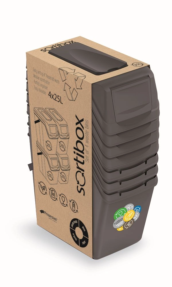 L’ensemble de 4 bacs Sortibox II est une solution idéale pour le tri quotidien des déchets. Sa forme étudiée et son système modulaire permettent d’empiler facilement les bacs les uns sur les autres ou côte à côte, afin d’optimiser l’espace disponible. Son design intemporel en teinte pierre grise s’intègre aussi bien aux intérieurs modernes que classiques.