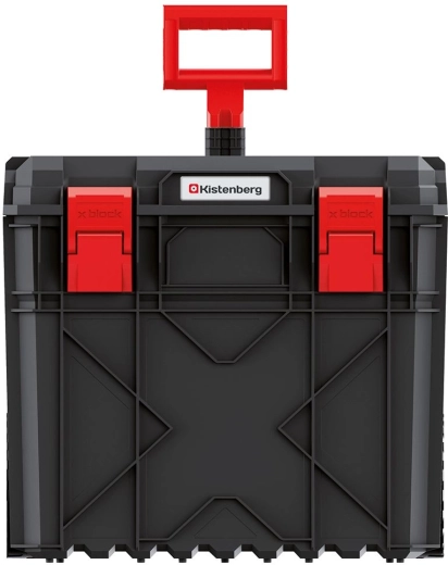 Le coffre à outils X-Block Pro est conçu pour les professionnels qui ont besoin d’une solution fiable et mobile. Grâce à son couvercle étanche, il est protégé contre la poussière et les éclaboussures d’eau, tandis que le corps en plastique robuste avec nervures résiste aux chocs et aux fortes charges. La poignée télescopique et les grandes roues assurent un déplacement confortable même sur terrain irrégulier.