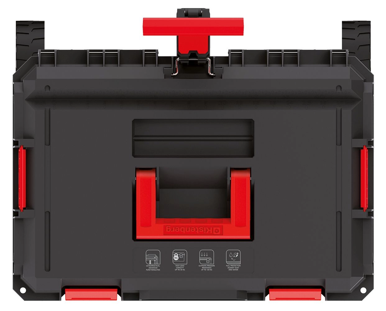 Les parois nervurées augmentent la résistance aux chocs et à la déformation. Le joint intégré dans le couvercle protège le contenu de la poussière et des éclaboussures d’eau – idéal pour des conditions exigeantes.