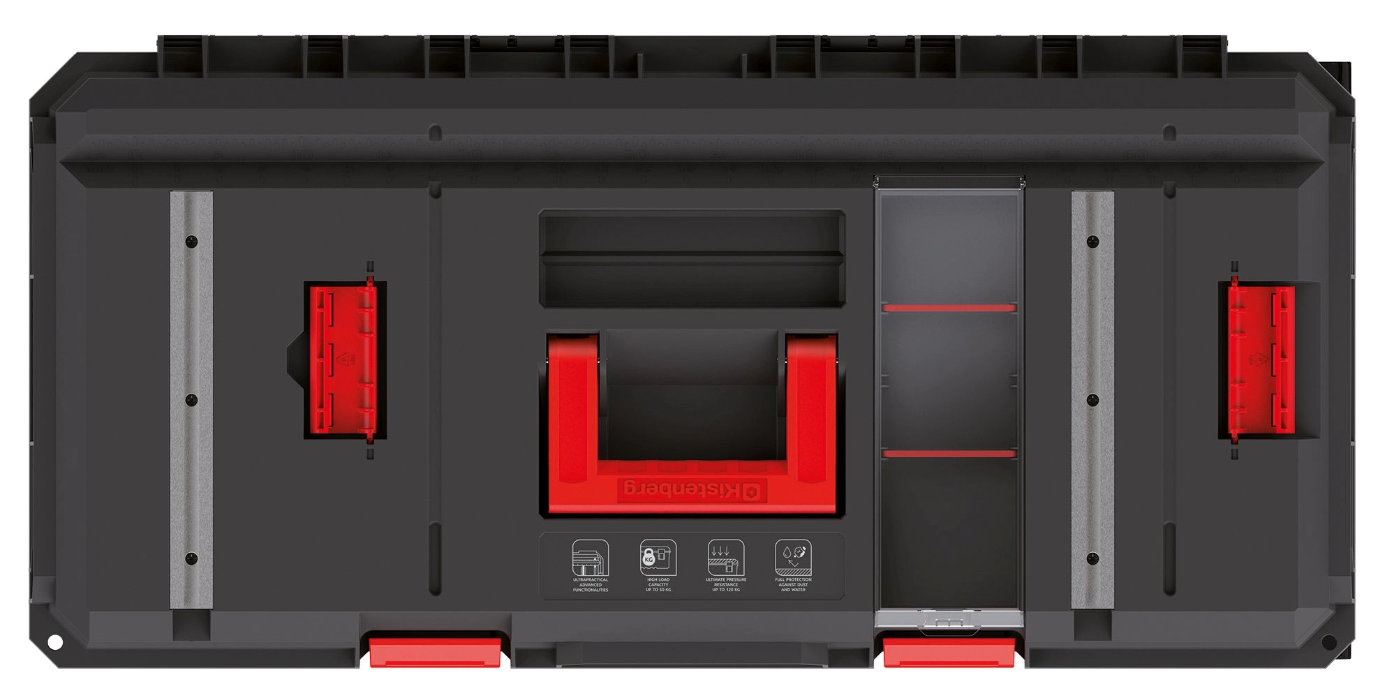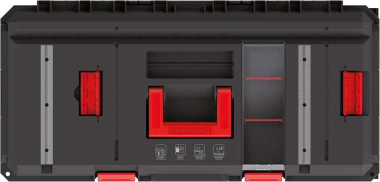 Les renforts nervurés et le joint du couvercle protègent les outils de la poussière et de l’humidité. Idéal pour les conditions exigeantes sur chantier comme à l’atelier.