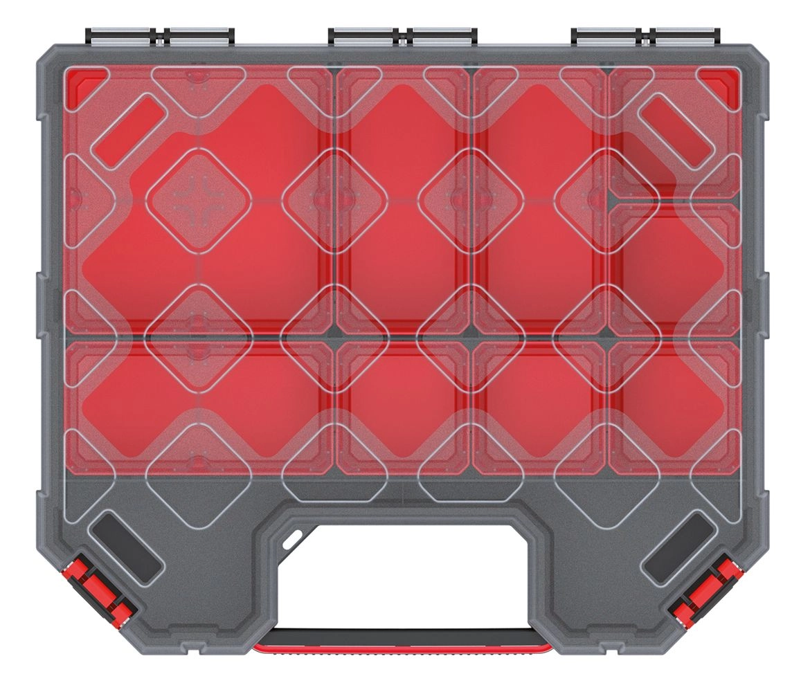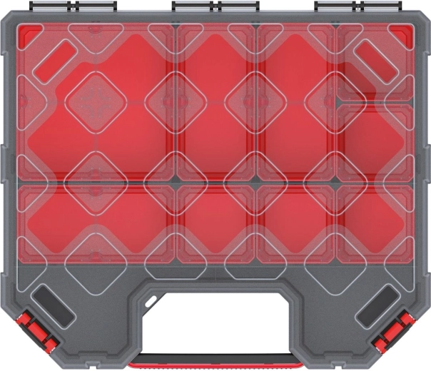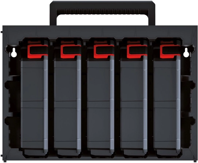 Armoire pratique avec 5 organiseurs amovibles offrant un rangement efficace des petits objets, composants et outils. Grâce aux couvercles transparents, vous avez une vue immédiate sur le contenu, tandis que la poignée ergonomique facilite le transport. Le corps résistant en plastique robuste assure une longue durée de vie, et la possibilité de superposition ou de montage mural permet d’économiser de la place dans l’atelier comme à la maison.