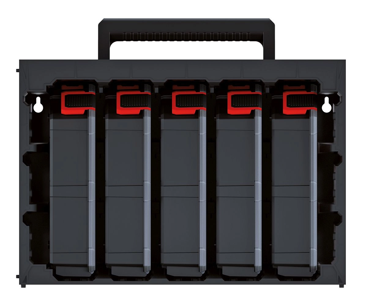 Armoire pratique avec 5 organiseurs amovibles Kistenberg TAGER CASE qui apporte de l’ordre à l’atelier, au garage et à la maison. Grâce aux cloisons et aux couvercles transparents, vous triez facilement vis, écrous ou clous et trouvez rapidement ce dont vous avez besoin. Sa structure résistante en polymères, sa poignée ergonomique, la possibilité de fixation murale et le design empilable économisent de l’espace et améliorent la visibilité.
