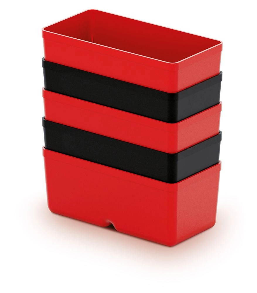 Pratique ensemble de cinq boîtes en plastique pour outillage, en élégante couleur noire, pour un rangement clair des petites pièces et accessoires. Idéal pour l’atelier, le garage et la maison. Les dimensions d’une boîte sont de 110 × 55 × 132 mm. Grâce à sa conception compacte et au plastique résistant, il assure une organisation rapide, un accès facile et une longue durée de vie.