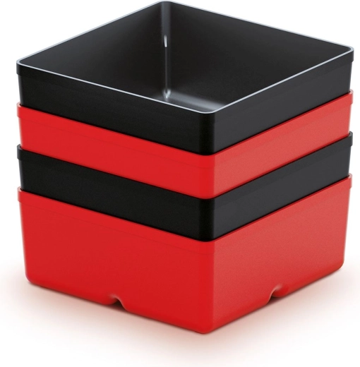 Pratique set de quatre mini boîtes à outils en élégant coloris noir pour un rangement clair des petites pièces. Idéal pour l’atelier, le garage et la maison. Plastique résistant, dimensions compactes et organisation facile pour vis, chevilles ou fusibles.