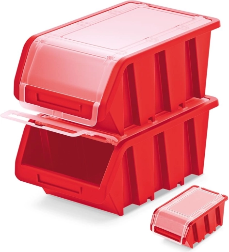 Pratique boîte de rangement en plastique de 155 × 100 × 70 mm en couleur rouge, idéale pour organiser clairement les petites pièces dans l’atelier, le garage ou l’entrepôt. Grâce au couvercle transparent, vous voyez immédiatement le contenu sans ouvrir, et les crochets arrière permettent une fixation sur un panneau perforé pour un gain de place et un accès rapide.