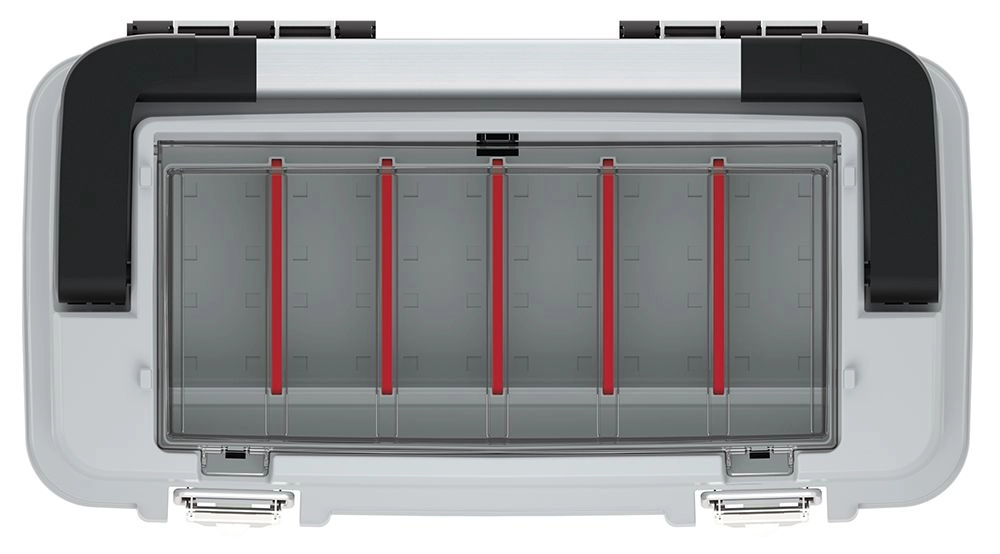 L’organiseur supérieur transparent avec cloisons réglables garde les petites pièces séparées et immédiatement visibles.