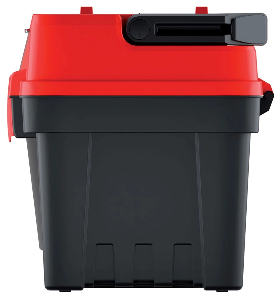 Le compartiment extérieur verrouillable avec séparateurs ajustables s’occupe des vis, embouts, forets et autres petites pièces, qui restent ainsi clairement triées. Les dimensions pratiques de 594 × 288 × 308 mm offrent suffisamment d’espace pour les outils électriques et manuels tout en maintenant une bonne portabilité.