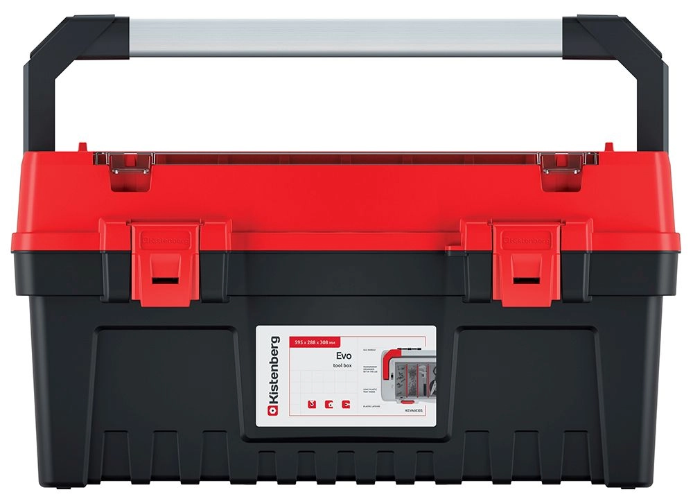 Mallette à outils EVO avec poignée métallique et séparateurs, 594 × 288 × 308 mm, rouge