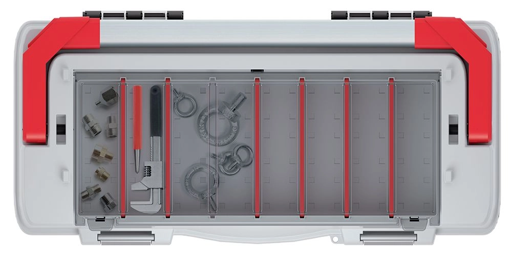 Le coffre EVO en version rouge est un partenaire fiable pour l’atelier, le garage et les interventions. Son corps résistant avec couvercle robuste et poignée métallique supporte une utilisation quotidienne, tandis que les boucles métalliques assurent une fermeture sûre même à pleine charge.