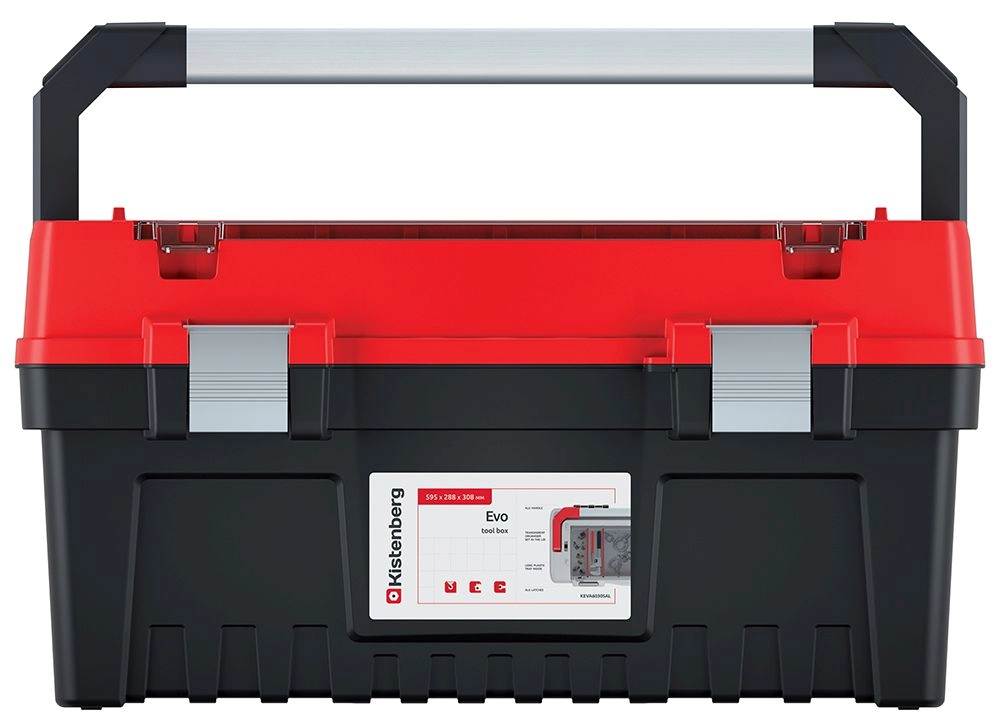 Coffre à outils EVO avec poignée et verrous métalliques, 59 × 28,8 × 30,8 cm, rouge