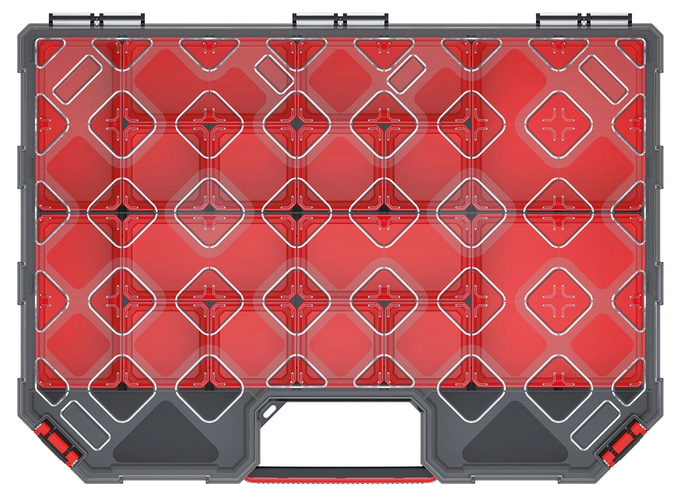 Un organiseur pratique pour l’atelier comme pour la maison, offrant un rangement clair des fixations, accessoires et petites pièces. Grâce à son couvercle transparent en polycarbonate, vous voyez toujours le contenu ; la construction robuste assure une grande résistance et les dimensions compactes permettent un transport et un stockage faciles.