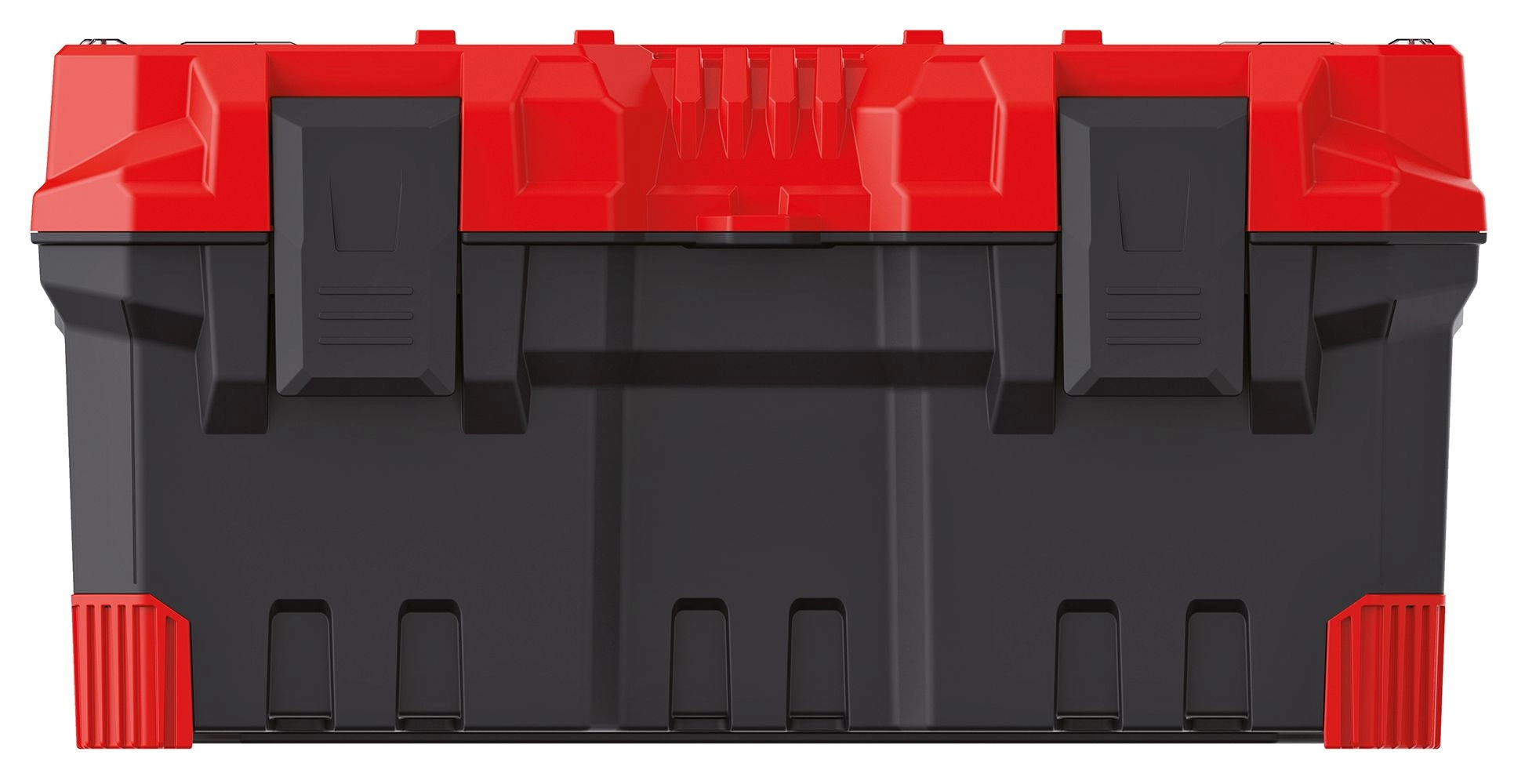 Grâce à la poignée solide et aux loquets robustes, le transport est sûr et confortable. Le plateau amovible facilite le tri des petites pièces, tandis que le compartiment principal accueille outils manuels comme électroportatifs. Les dimensions pratiques de 554 × 286 × 276 mm offrent un volume généreux sans poids superflu.