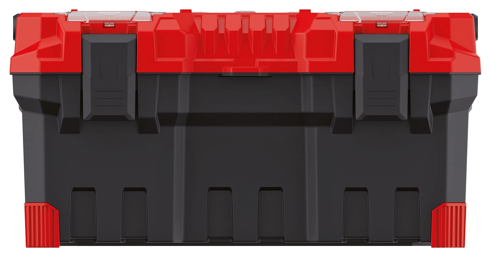 Un corps en plastique solide avec coins renforcés et une paire de boucles frontales protège le contenu lors du transport et du stockage.