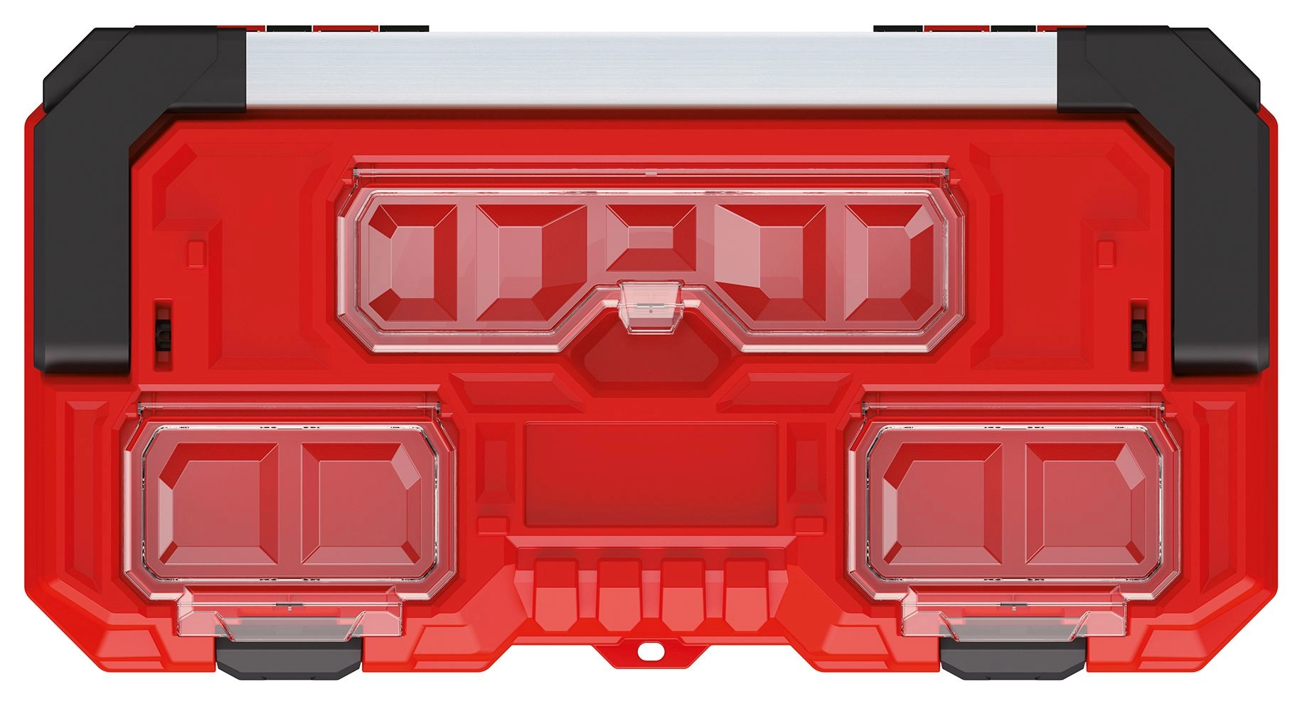 - Espace et clarté : compartiment principal pour outils + compartiments supérieurs transparents pour petites pièces.