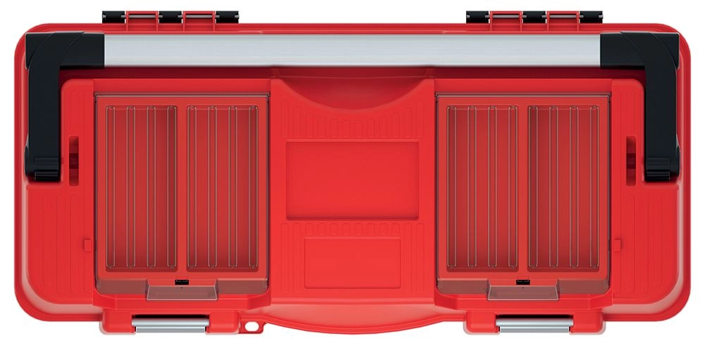 Mallette à outils pratique et résistante en plastique, dimensions 598 × 286 × 327 mm, pour un rangement clair et un transport sécurisé. Elle offre une construction robuste, une capacité de charge jusqu’à 25 kg, un plateau intérieur amovible et deux organiseurs transparents sur le couvercle avec capots en polycarbonate. Pour un transport aisé, elle est équipée d’une large poignée en aluminium anodisé et de solides fermetures en aluminium. L’élégant design rouge‑noir s’intègre parfaitement à tout atelier ou garage.