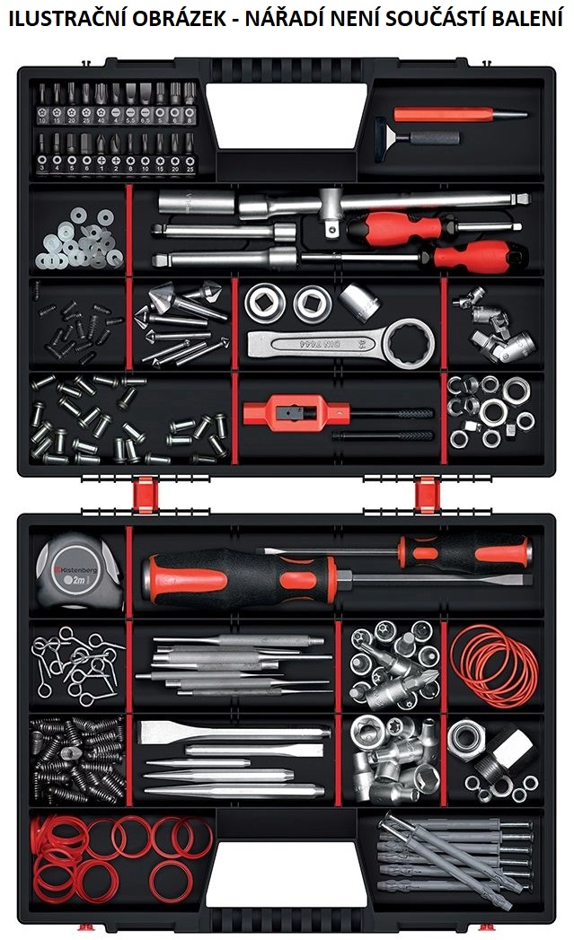 Les couvercles transparents et résistants offrent une visibilité immédiate du contenu sans ouvrir, tandis que la construction en plastique robuste résiste à une utilisation quotidienne. Deux verrous de sécurité sur chaque organisateur évitent toute ouverture involontaire et tout renversement. Grâce à la poignée ergonomique, le transport est confortable et sûr.
