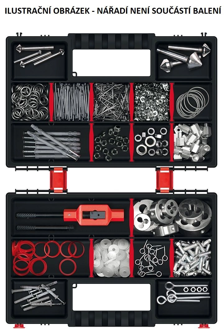NORS DUO est une solution ingénieuse pour ranger vis, tire-fonds, chevilles et autres petites pièces. Les deux organiseurs indépendants peuvent être solidement reliés en un ensemble compact, afin de les transporter facilement d’une seule main et d’économiser de la place lors du stockage. Grâce aux couvercles transparents et résistants, vous voyez immédiatement le contenu et perdez moins de temps à chercher.