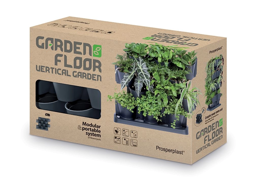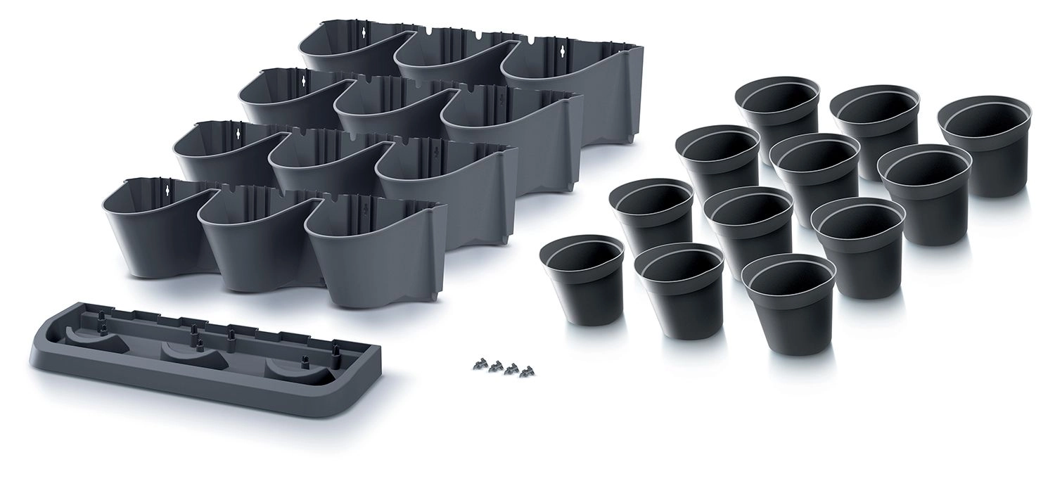 Ce kit ingénieux de jardinières verticales permet de cultiver davantage de plantes sur un espace minimal. Grâce aux modules empilables et aux contenants-gobelets amovibles, organisez facilement herbes, succulentes et plantes retombantes en une élégante composition végétale. La finition anthracite apporte une touche moderne, parfaite pour le balcon, la terrasse ou l’intérieur.