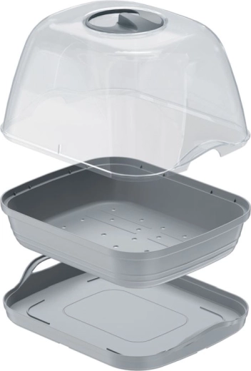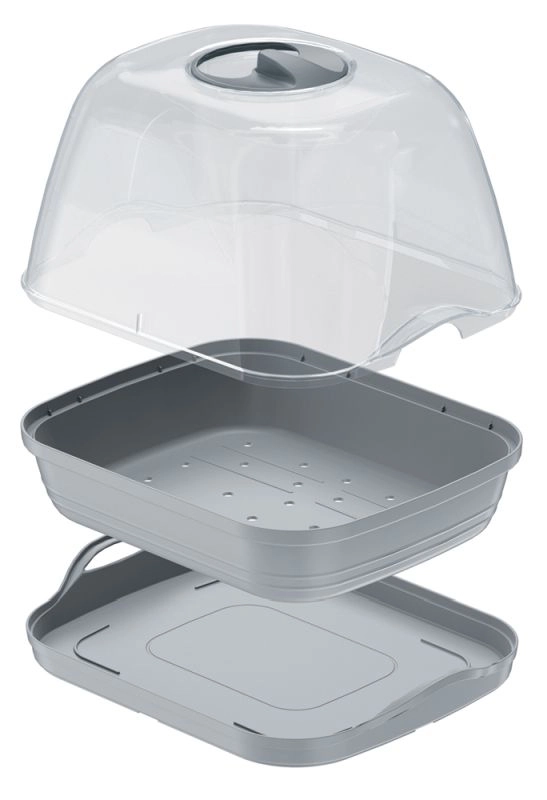 Semoir pratique avec un couvercle en polycarbonate résistant pour un prégermage rapide des plantes sur une table ou un rebord de fenêtre. Il offre une transparence supérieure, une meilleure transmission de la lumière et une résistance accrue aux chocs par rapport aux couvercles PP classiques, garantissant un microclimat idéal pour une croissance saine des semis.